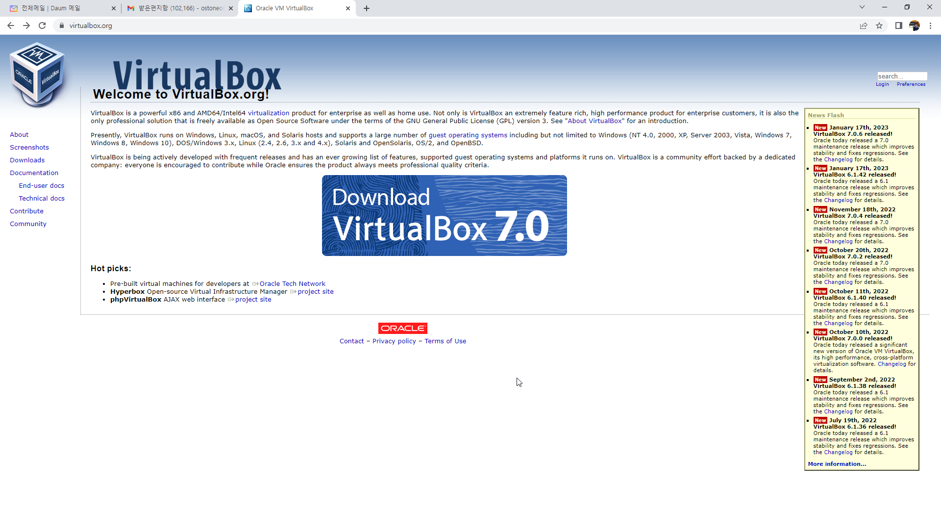 각설하고~~~ 일단 버추얼박스 홈페이지에 접속했습니다.