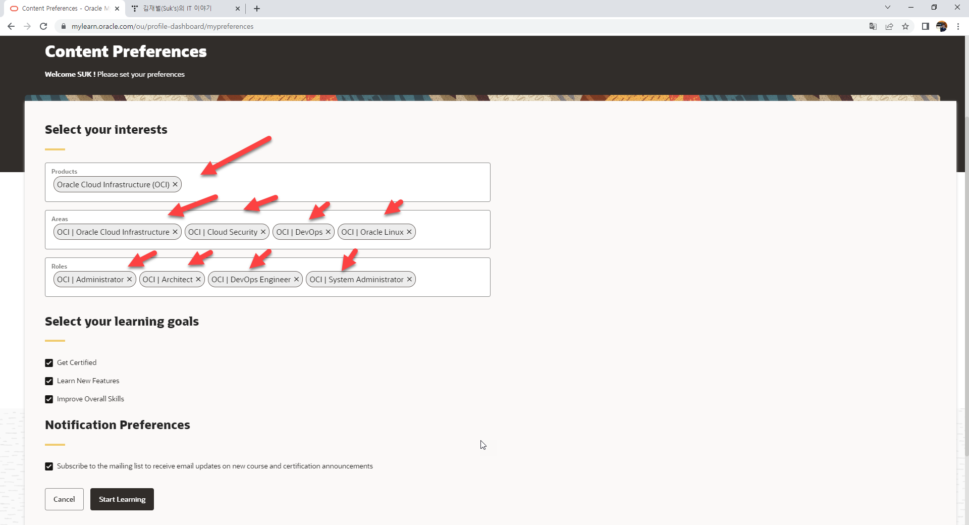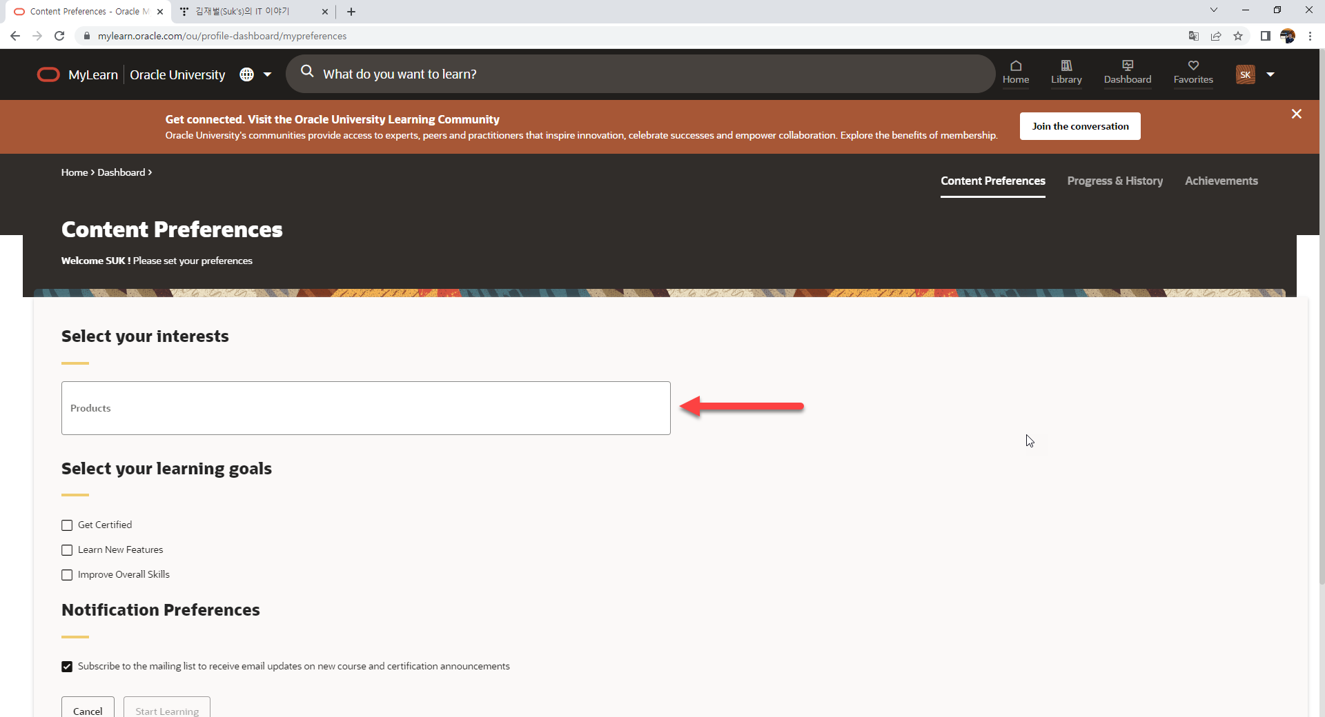 https://mylearn.oracle.com/ 바로 여기를 접근하셔서 오라클의 양질의 교육 훈련 시스템을 활용할 수 있는 것이죠.