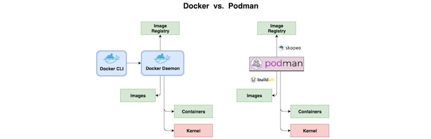 암튼 도커의 데몬 문제로 인해 서비스 실패 등 여러 이슈로 인해 RHEL 에서는 Docker 가 아닌 Podman 을 지원하기 시작했죠.