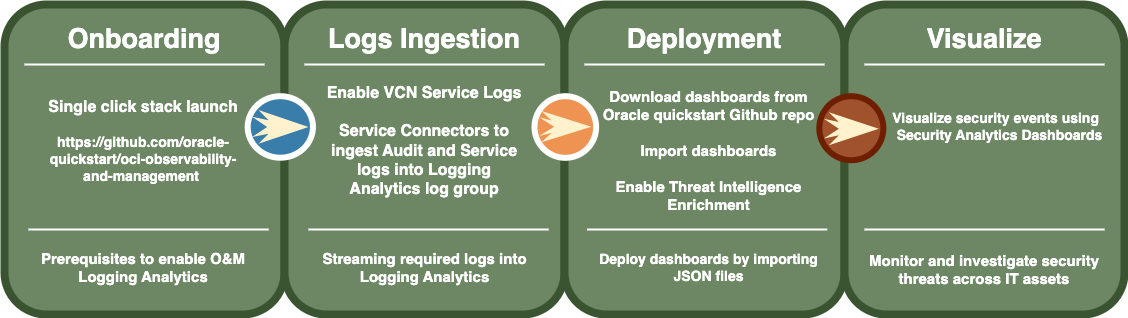 보안 기본 대시보드는 OCI 고객을 위해 Logging Analytics를 통해 VNC 흐름 로그 및 감사 로그를 사용하여 보안 이벤트를 모니터링할 수 있는 훌륭한 시작점을 제공합니다. 이러한 OCI 기능을 활용함으로써 조직은 OCI 보안 상태에 대한 귀중한 통찰력을 얻고 정보에 입각한 결정을 내려 클라우드 리소스를 보호하고 관리할 수 있습니다.