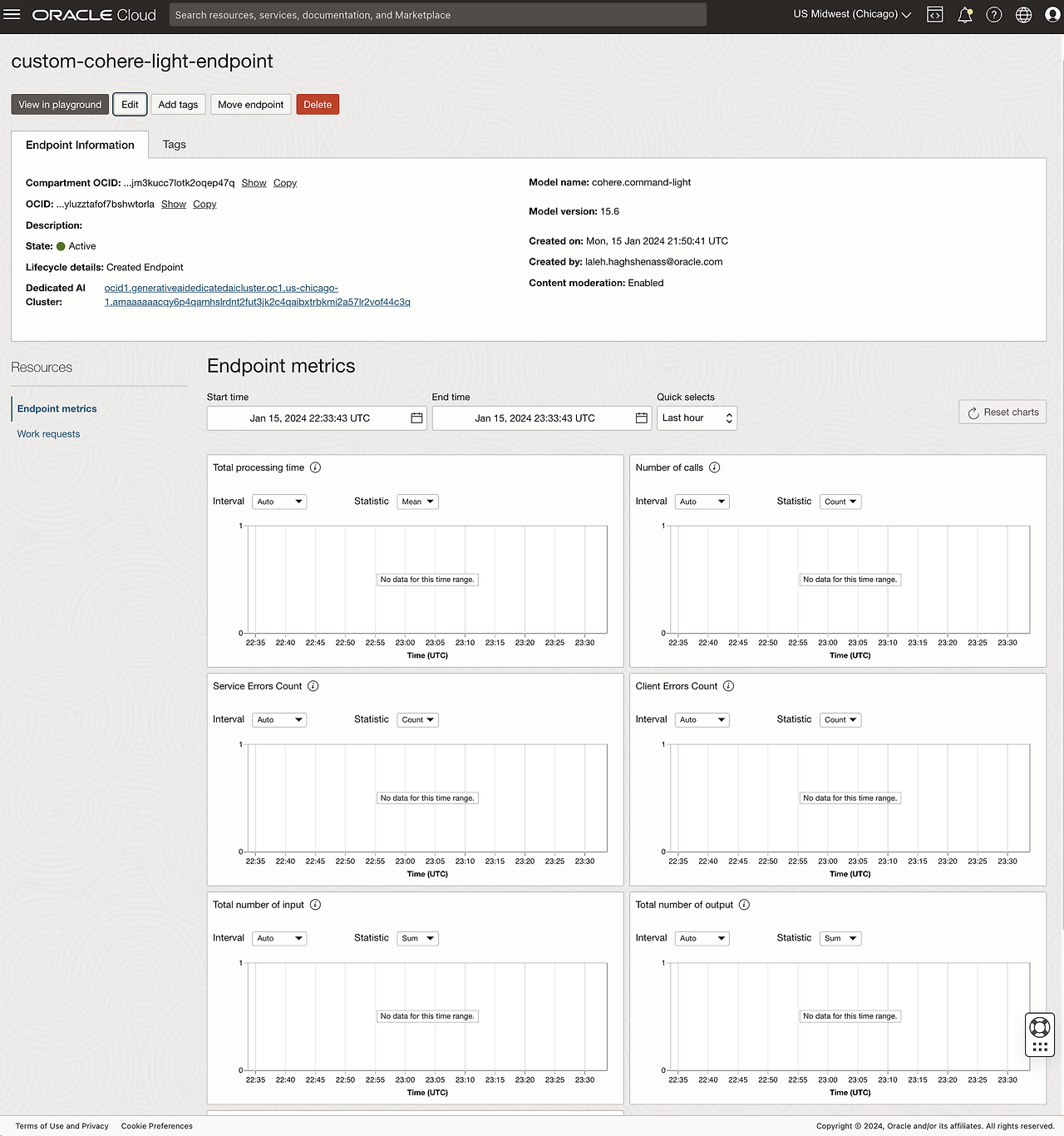 OCI Generative AI에 호스팅된 모든 기본 모델은 Oracle Cloud Console 플레이그라운드 기능, OCI CLI, 소프트웨어 개발자 키트(SDK), API 및 LangChain 통합을 통해 주문형으로 사용할 수 있습니다.