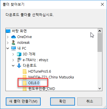 여기서는 새 폴더 만들기를 선택 후 OEL8.0 이라는 폴더를 생성하여 선택 하였습니다.