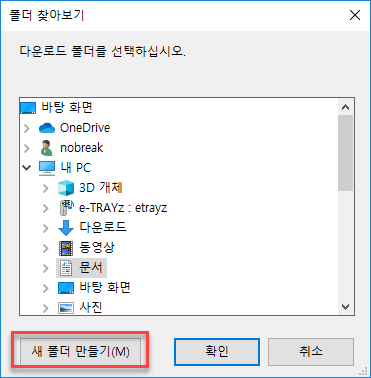 다운로드 받은 파일이 위치할 저장위치를 지정합니다.